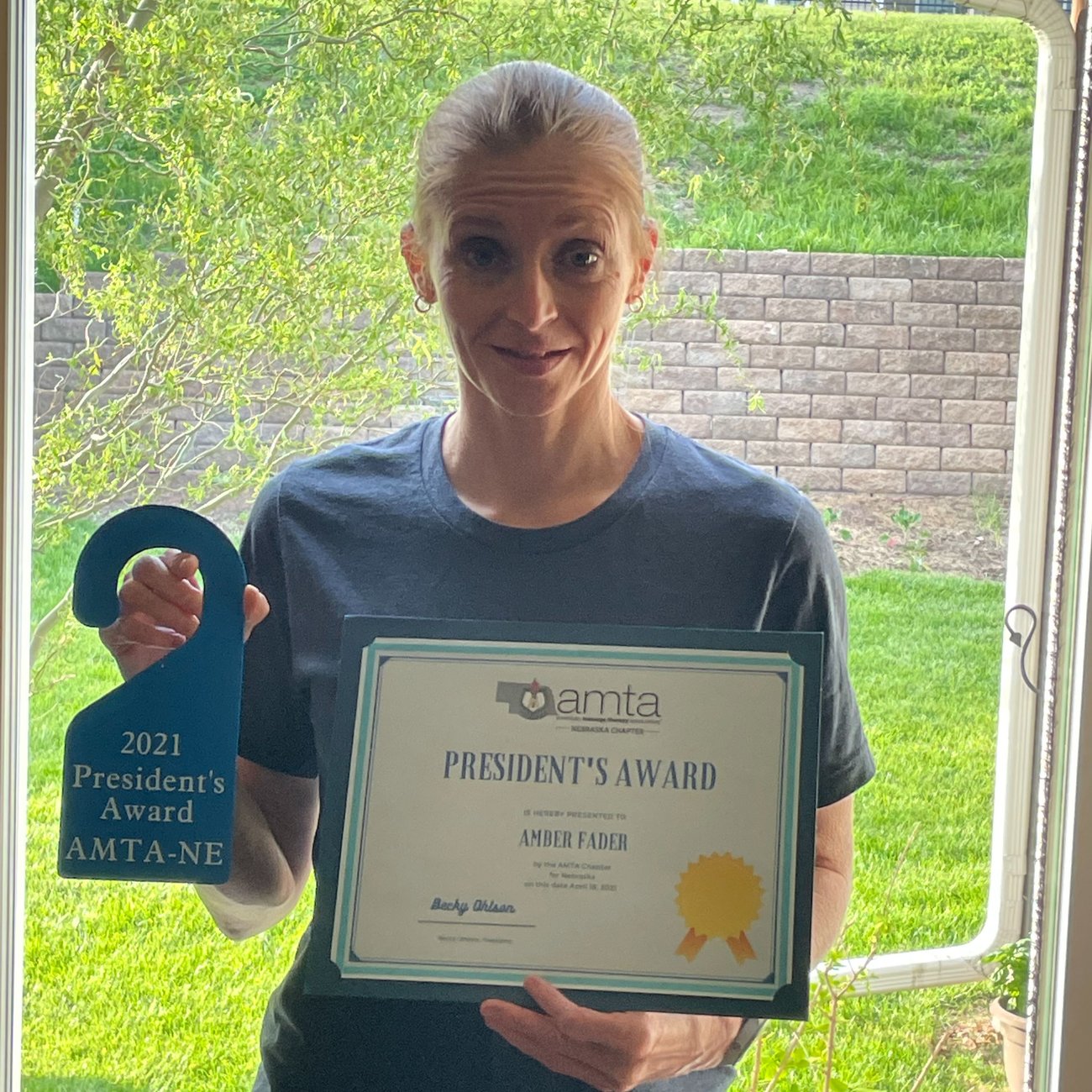 When she’s not in the office, Amber enjoys running, yoga, reading, gardening, and knitting. She’s been an AMTA member for 20 years, volunteers with the Nebraska Chapter of AMTA and the Kindness Crew, and has supported countless athletes through events like the Lincoln Marathon and Cornhusker State Games.